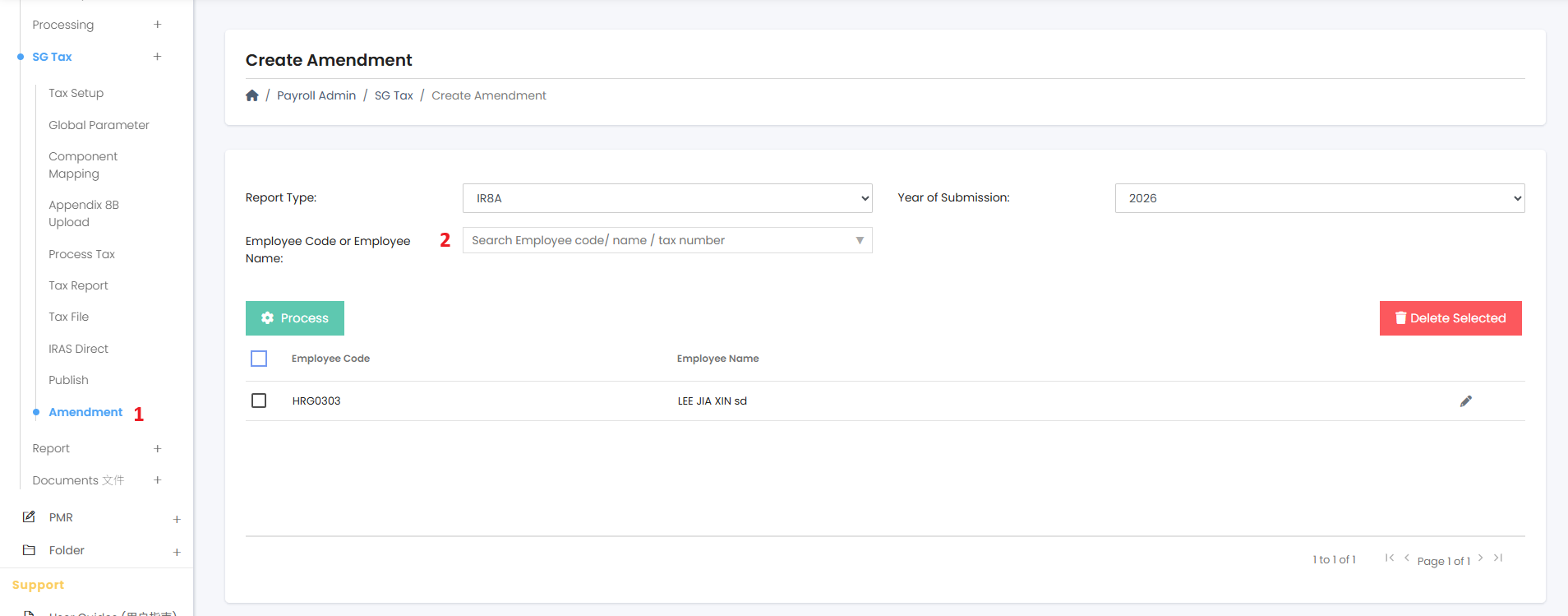 - IR8A / IR8S / Appendix 8A: Enter the final amount to amend.